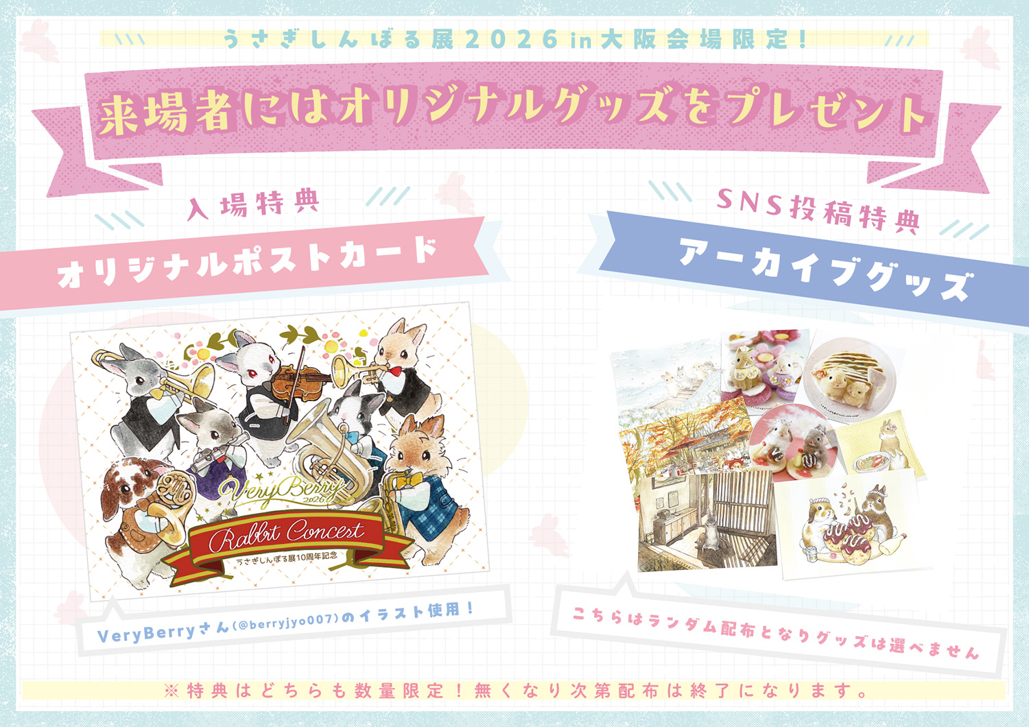 先着数量限定の来場者特典として、「VeryBerry」による10周年限定の描き下ろしイラストを使用したオリジナルポストカードをプレゼント!