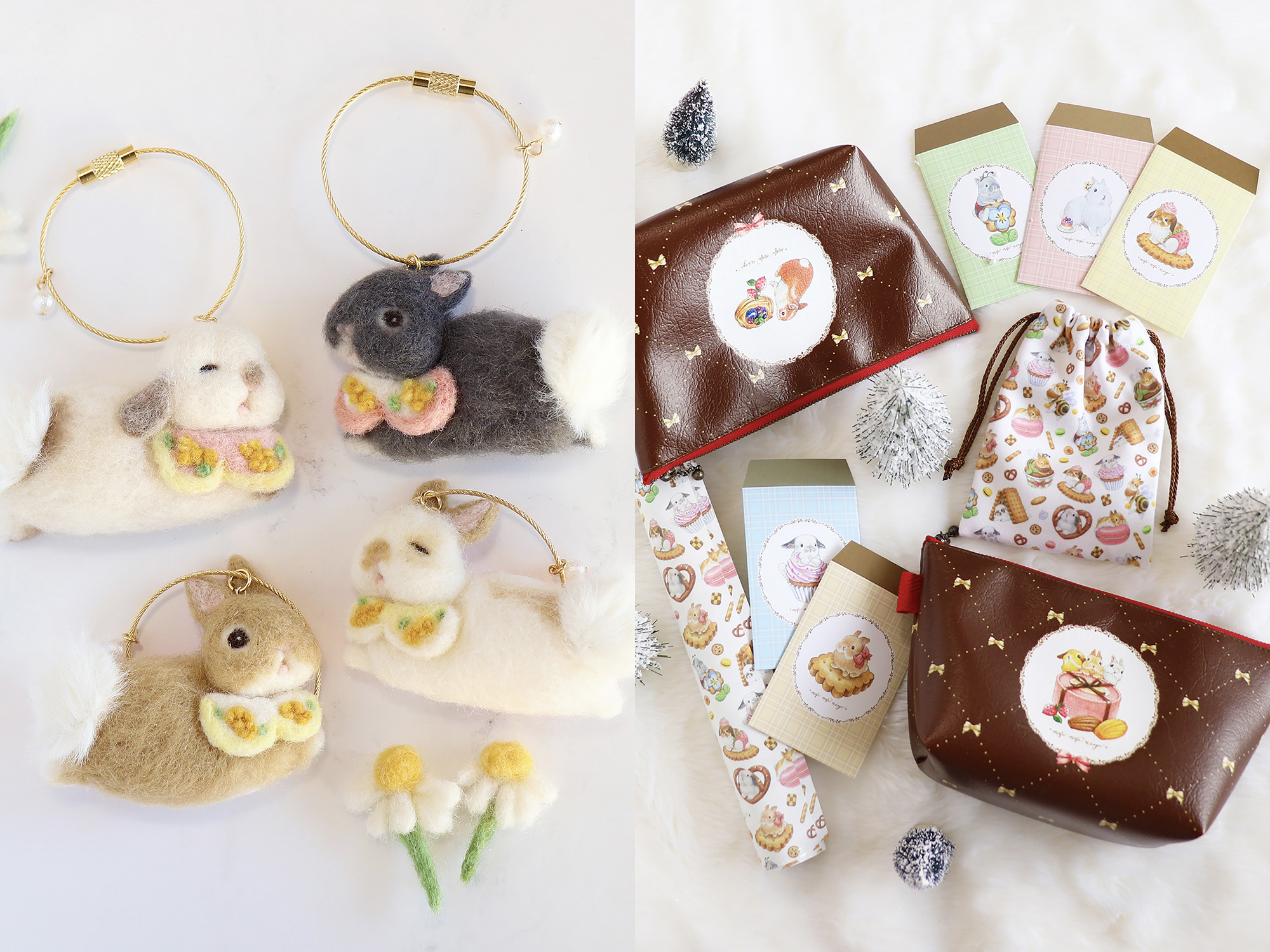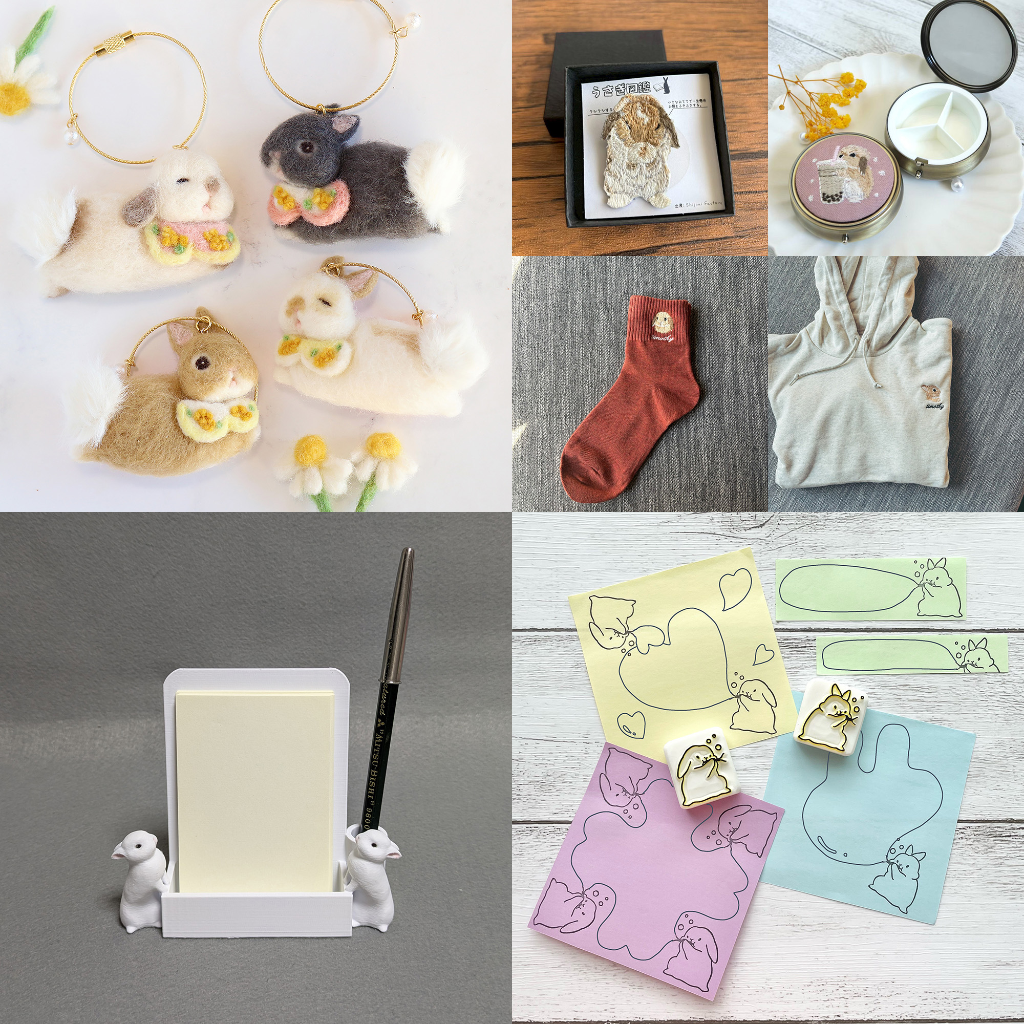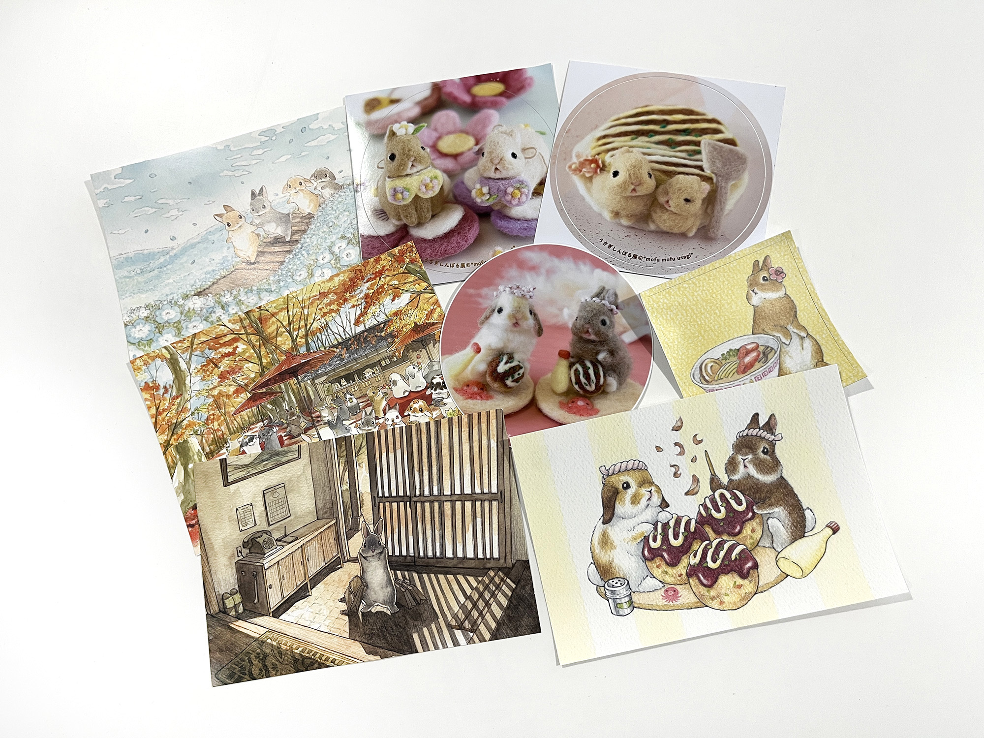 会場内には、羊毛作品で人気の「*mofu mofu usagi*(@coco_mirumiru)」とコラボした特設ブースが登場。本展のために描き下ろされた特別イラストのグッズに加え、メッセージカードやアクリルキーホルダーなど、ファン垂涎の新作アイテムを多数販売します。ここでしか手に入らない限定アイテムの数々は、コレクター必見。作品とグッズの両方を通して「*mofu mofu usagi*」の世界観を存分に楽しめる贅沢な空間です。